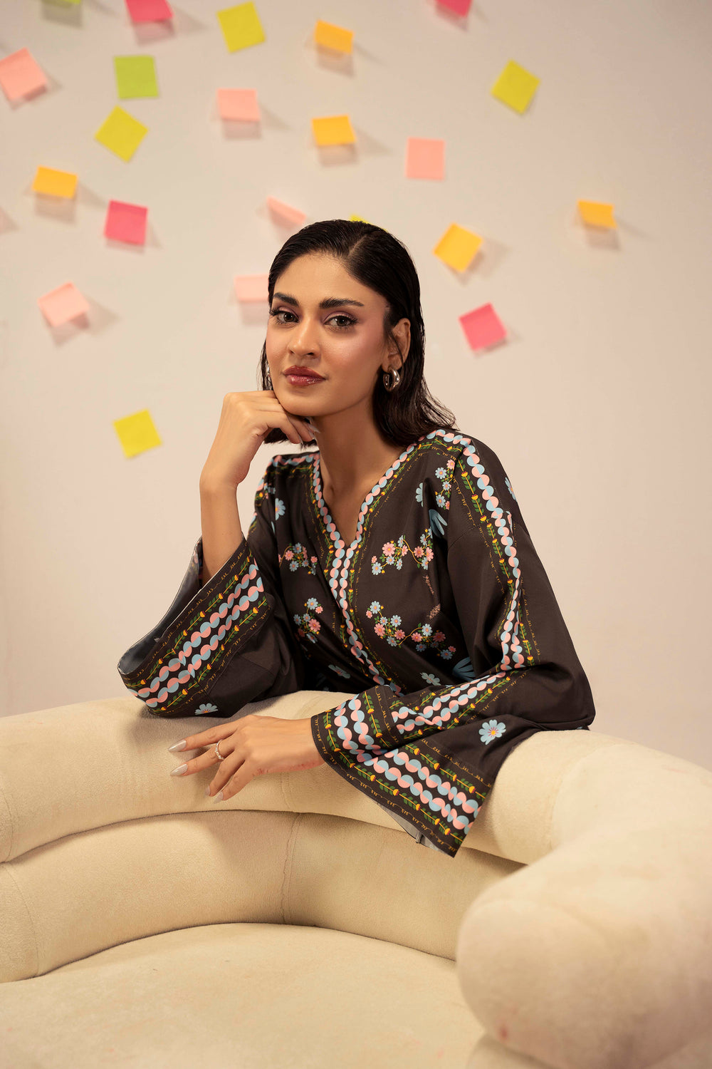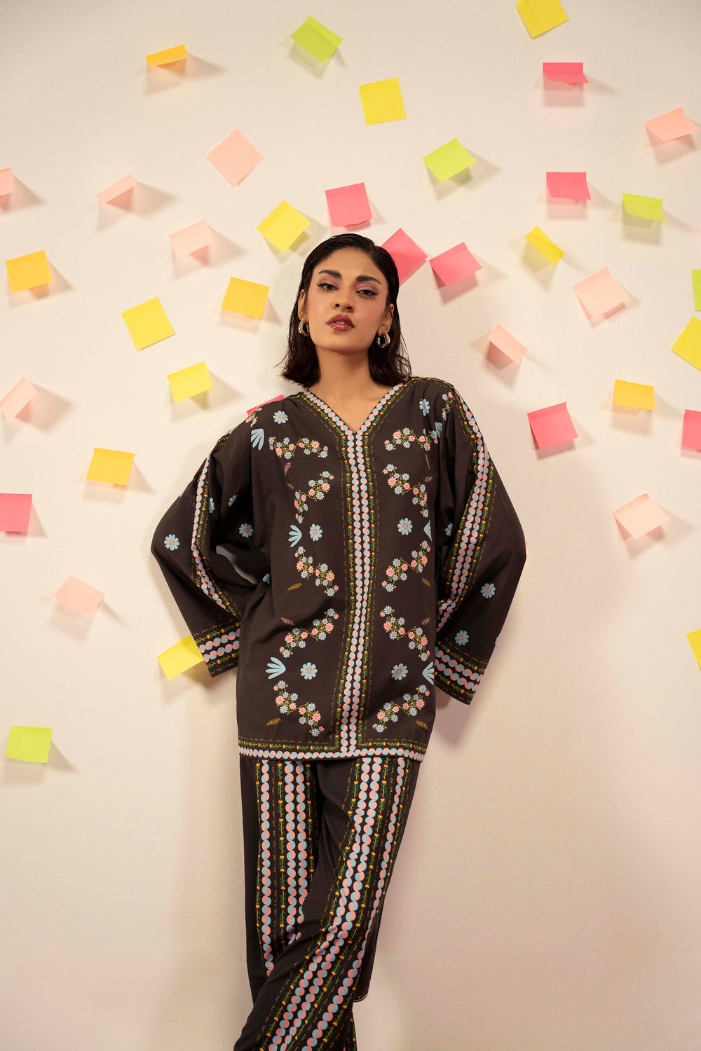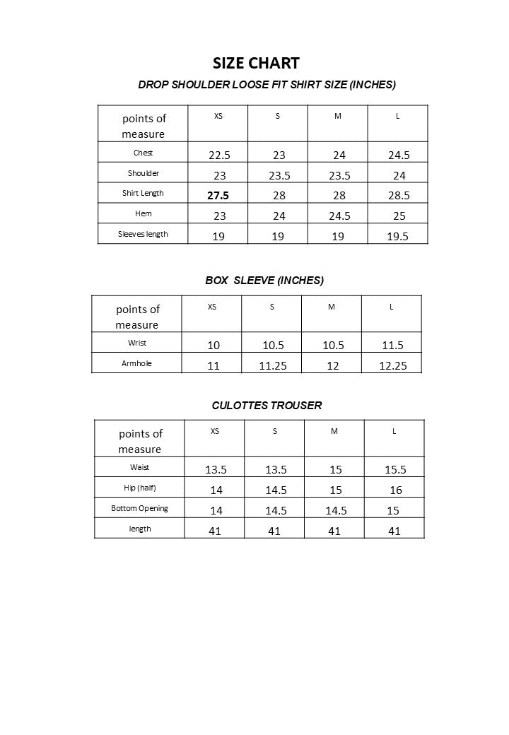 • Short, straight loose fit down shoulder shirt for an elongated vertical form