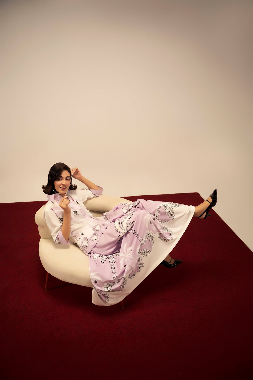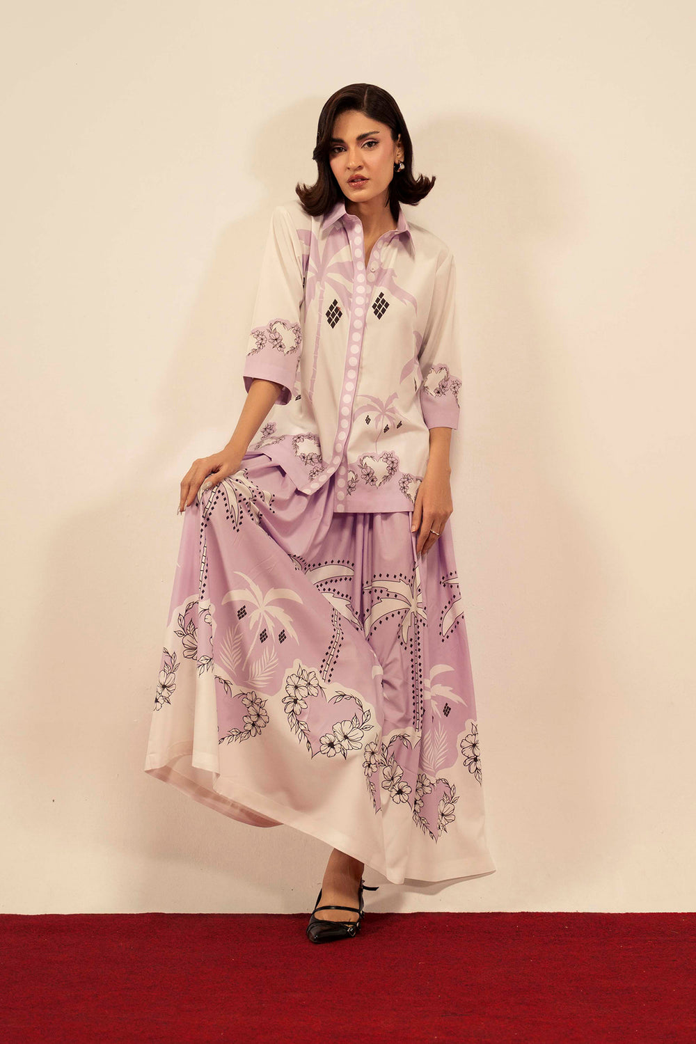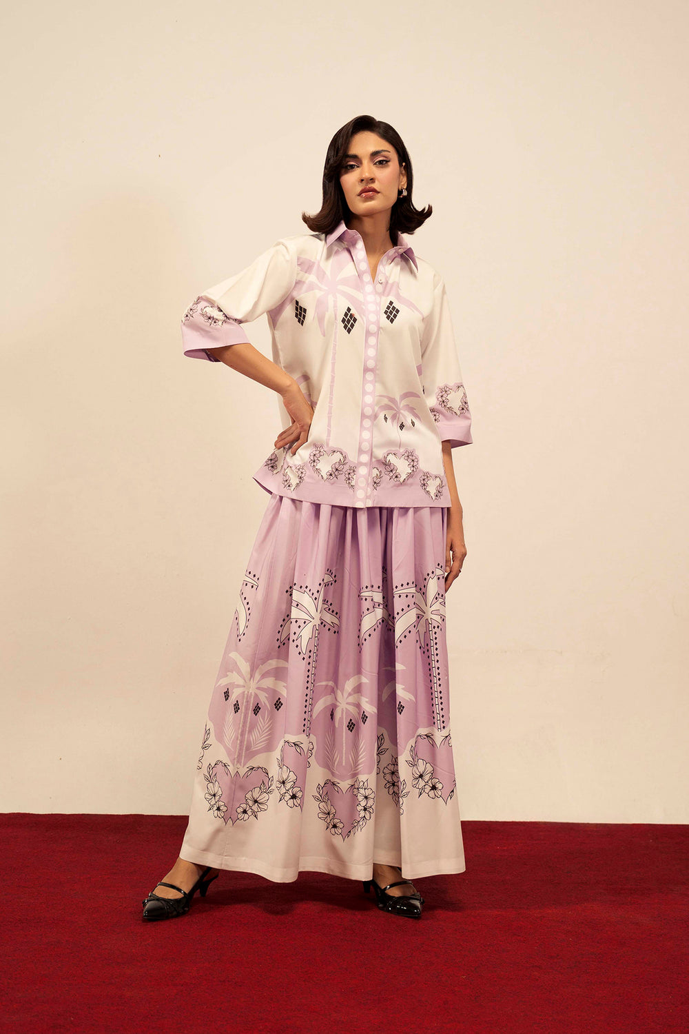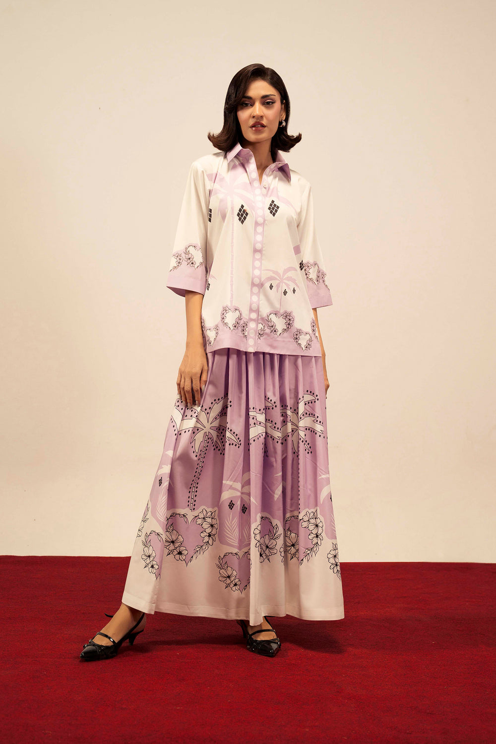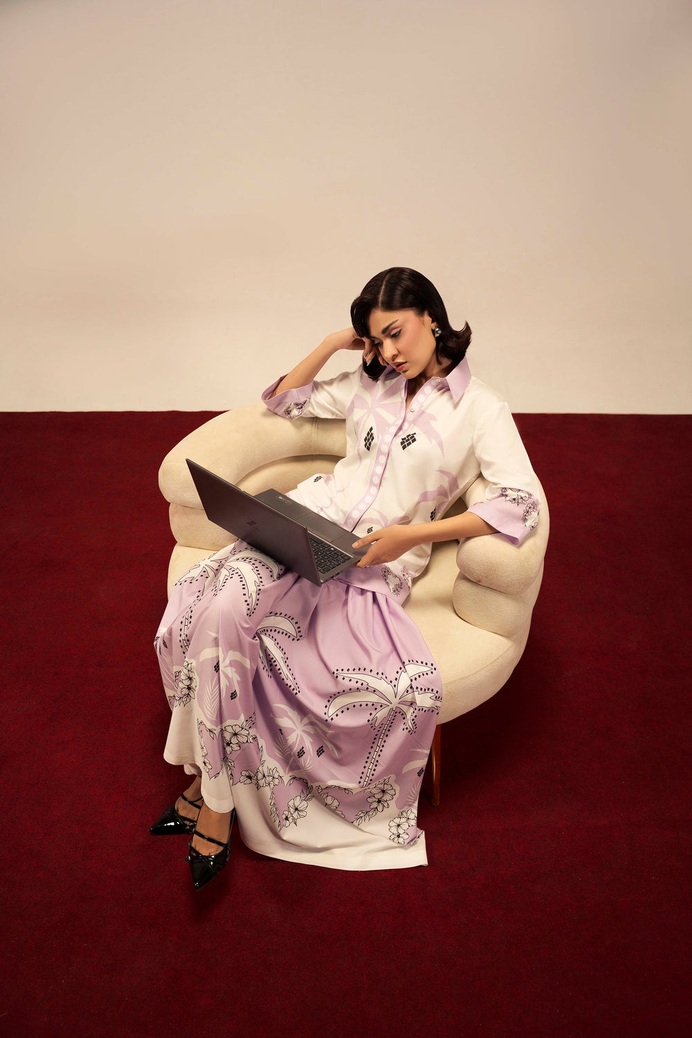 Rendered in a dreamy lilac hue, this two-piece set features a sculpted