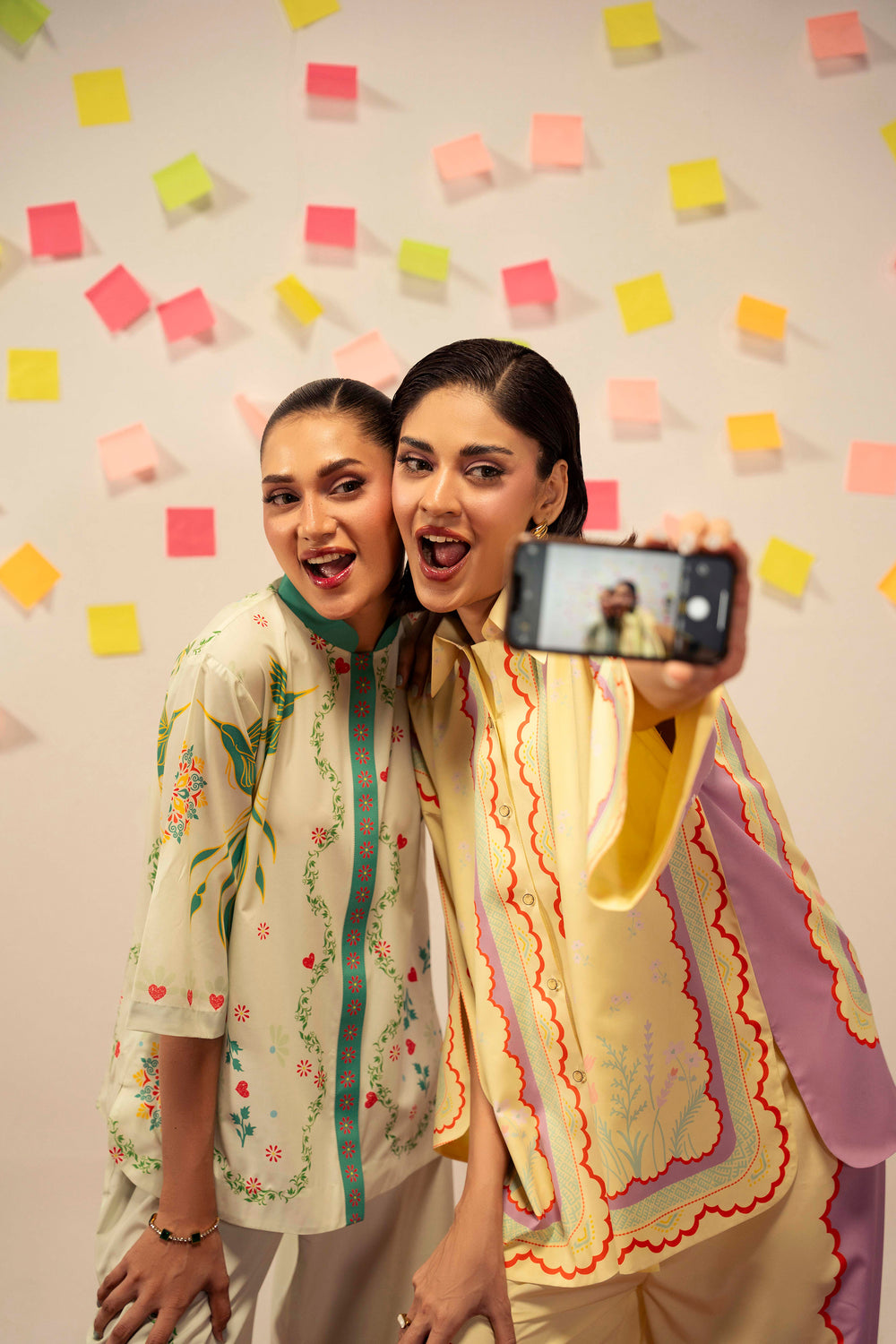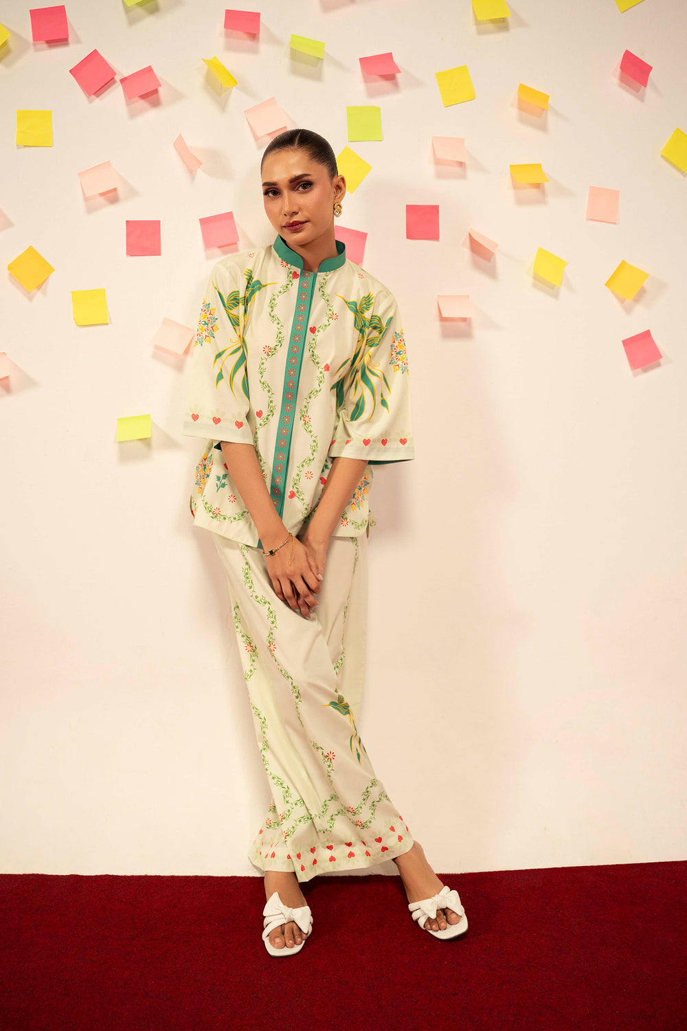 Crafted in a refreshing sage-mint tone, the co-ord features a straight