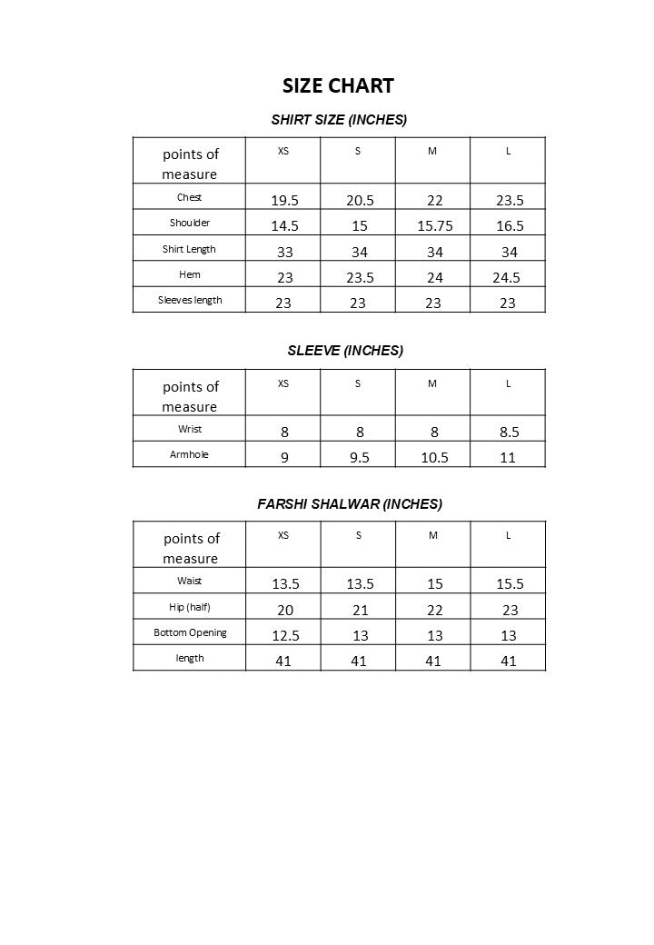 • “Flowy farshi shalwar with a generous flare and printed hem border.”Full circular